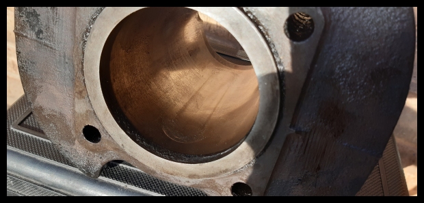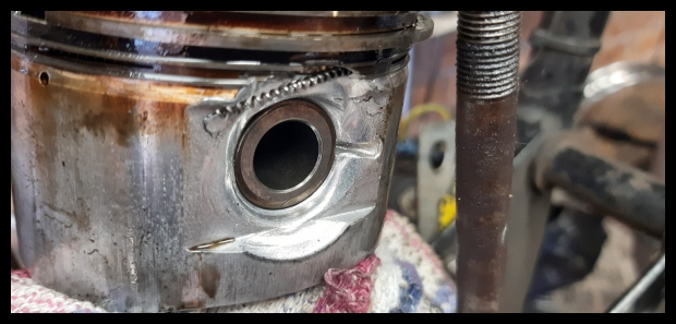 Whilst on holiday it was pointed out the the B31 was smoking a little on the over-run. There was no loss of compression and no nasty noises coming from the engine. The general consensus was a worn exhaust valve guide. Anyway, I pulled the top end off the engine and found a "little surprise" waiting for me. It seems a piston circlip had escaped, which in turn allowed the gudgeon pin to wear a groove up the side of the bore.