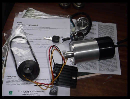First job is to get the charging system up and running, oh and whilst I'm at it, a set of indicators and a rewire. Those folks at Alton make a nice alternator which fits in place of the dynamo and is belt drive too . . . the only snag being, they ain't cheap. Still, I intend using the bike at night, so it's worth the expense. I also fitted a cartridge type oil filter, which I think is a must if you are running an engine with plain bearings.